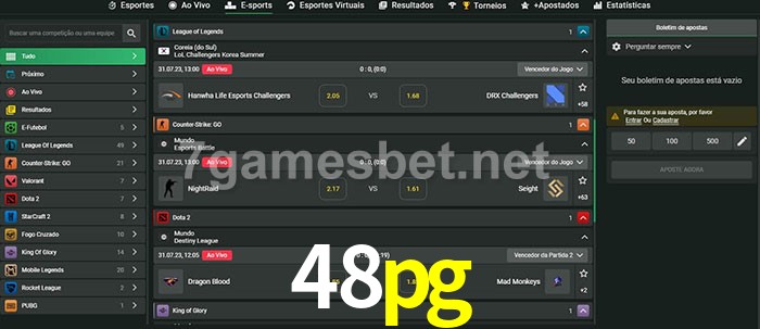 A aposta 48pg oferece aos jogadores a experiência mais conveniente de apostas em eSports!